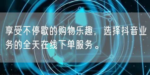 随时随地随心购,抖音业务的全天候在线下单服务让你尽享便捷生活。